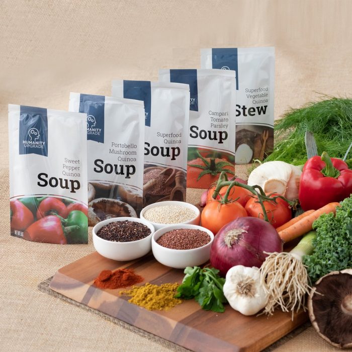 10 Delicious Soups (2 of each): Campari Tomato Parsley, Superfood Vegetable Quinoa Stew, Portobello Mushroom Soup, Superfood Quinoa Soup and Sweet Pepper Quinoa Soup
