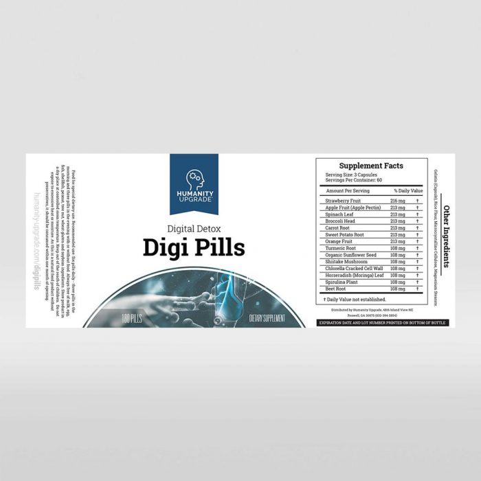 Digi Pills is a proprietary blend of superfoods inspired by NASA and designed to help mitigate the ravages of daily exposure to EMF. Chlorella and spirulina are supported by cilantro, celery, kale, apple pectin, meringo, and barley to provide a rich array of cellular healing and protection. These ingredients provide a nutritional boost to cellular health. Digi Pills have been proven to help radiation levels in people.